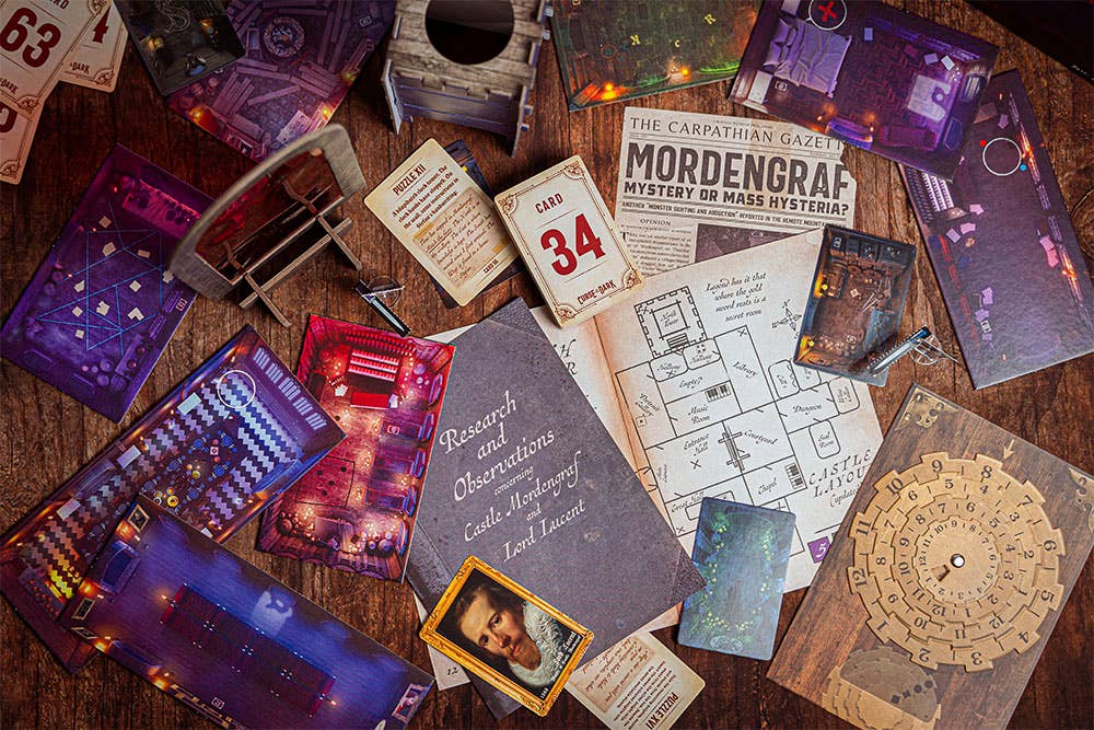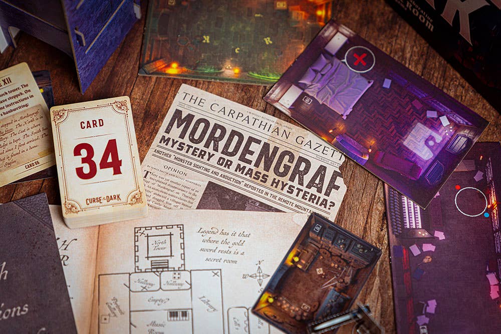 In Curse of the Dark, players build an interactive tiled map of the castle’s floor plan, discovering and solving over 20 interlinked puzzles. The game features innovative puzzle components and gameplay, and is designed to recreate the escape room experience at home.